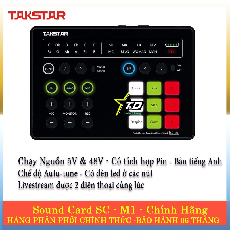 - Souncard SC-M1 là một loại sound card âm thanh di động ,Nó tương thích với điện thoại, máy tính bảng và laptop với Hệ thống iOS, Android và Windows.