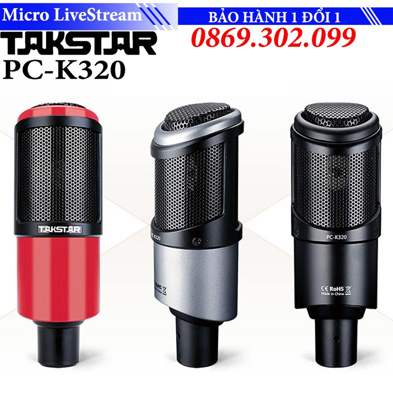 Micro thu âm Takstar PC-K320Micro PC-K320 là micro điện dung hiệu suất cao cho âm thanh chất lượng tốt hơn, độ nhạy của mic cao hơn và phạm vi thu cũng rộng hơn. Takstar PC-K320 áp dụng cho đài phát thanh và truyền hình, thu âm cá nhân, bản thu âm nhạc và hát online hay streaming.