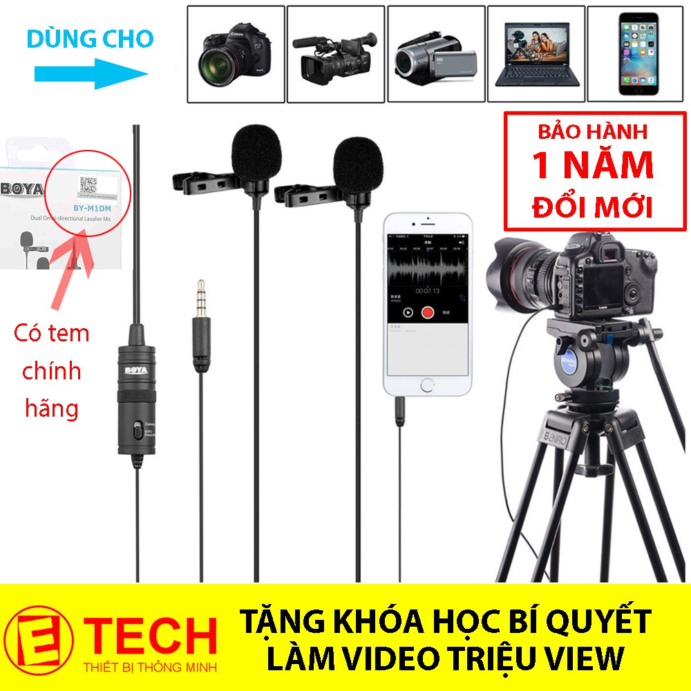 Thiết Bị Âm Thanh > Micro thu âm || Mic thu âm gài áo Boya BY-M1DM, micro cho 2 ngườiCòn hàng