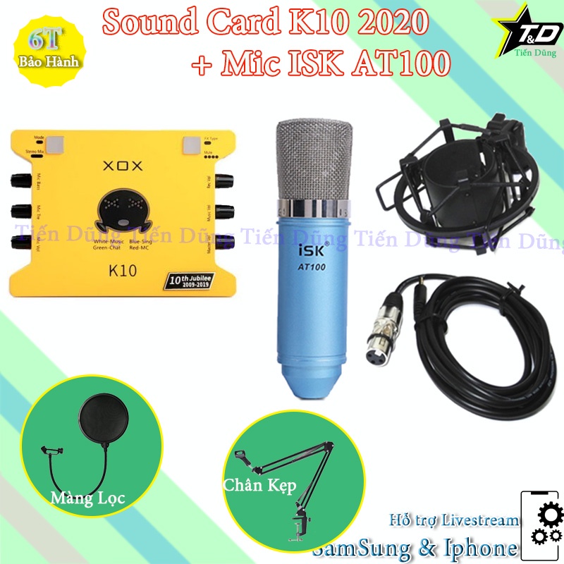 [Mã ELHACE giảm 4% đơn 300K] Bộ mic thu âm ISK at100 sound card xox k10 2020 phiên bản tiếng anh chân kẹp màng lọc