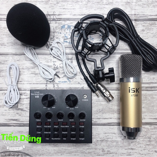 Thiết Bị Âm Thanh > Micro thu âm || Mic Thu Âm ISK AT350 và Sound Card V8 có Bluetooth Auto-tune bản tiếng anh- Bộ mic đã có dây livestreamCòn hàng