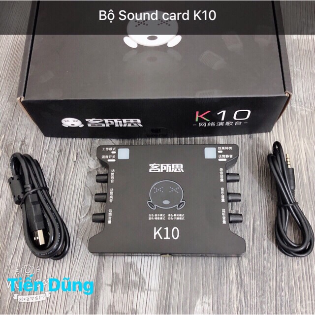 - Bộ sound card k10 ( 1 dây 2 đầu 3.5 , 1 dây cấp nguồn kiêm truyền nhạc , 1 sound card k10).