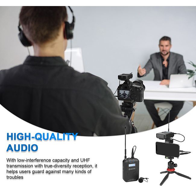Mic thu âm không dây BOYA BY-WM6S là một thế hệ mới UHF hệ thống micro không dây, tương thích với smartphone, tablet, máy ảnh DSLR, máy quay phim, máy ghi âm thanh và nhiều hơn nữa. Với khả năng chống nhiễu thấp và đường truyền UHF với khả năng thu đa dạng thực, nó giúp người dùng chống lại nhiều loại rắc rối, ngay cả trong những điều kiện quay khó khăn, đồng thời mang lại chất lượng âm thanh phát sóng và tính toàn vẹn của âm thanh. BOYA Micro BY-WM6S thuộc loại micro chuyên dụng dành cho nhà báo di động, vlogger và quay phim…BY-WM6S mang nhiều sự cải tiến vượt trội cả về thiết kế, chất liệu và chất lượng âm thanh.THÔNG SỐ KỸ THUẬT: