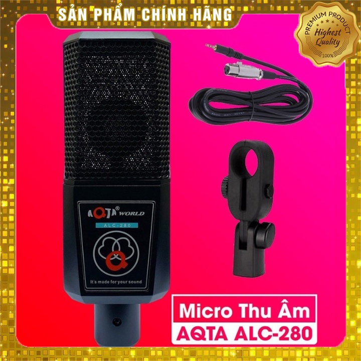 - Mic thu âm AQTA ALC-280 có độ nhạy rất cao giúp bạn có được âm thanh tuyệt vời như các ca sĩ chuyên nghiệp. Âm thanh cao trong trẻo như chim hót và trầm thấp ấm áp giúp người nghe hòa quyện vào không gian âm nhạc của bạn
