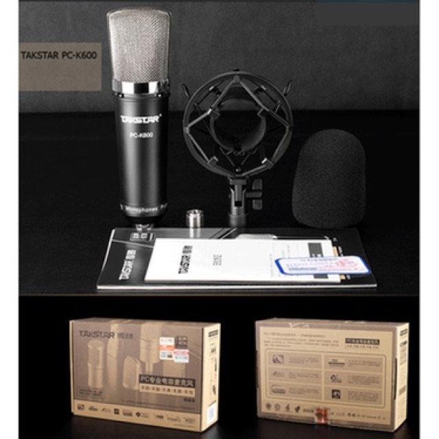 Microphone Takstar PC-K600 Shockmount Bông lọc Phiếu bảo hành chính hãng Sách hướng dẫn sử dụng Hộp sản phẩm