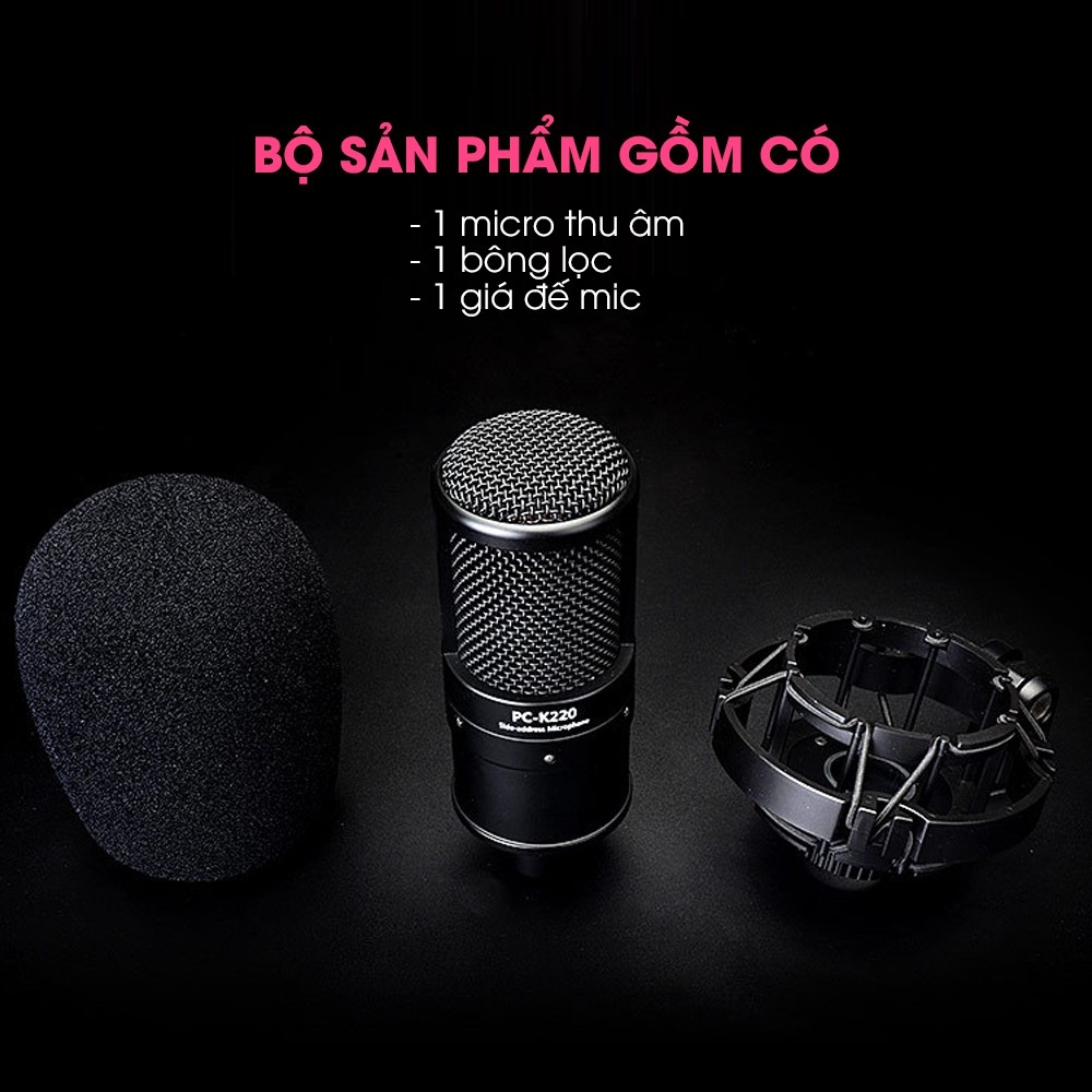 Mic Thu Âm Livestream Hát Karaoke Chuyên Nghiệp Takstar PC-K220 Độ Nhạy Cao, Lọc Ồn, Chính Hãng Cao Cấp Bảo Hành 1 Năm