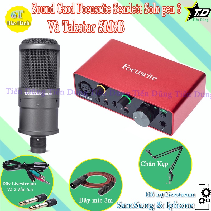 Thiết Bị Âm Thanh > Micro thu âm || Bộ Mic Thu Âm Livestream Takstar SM8B Và Sound Card Focusrite Scarlett Solo Gen 3 Chân Đế dây live stream Dây Mic 3mCòn hàng