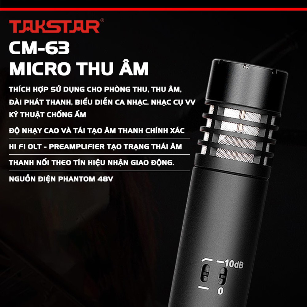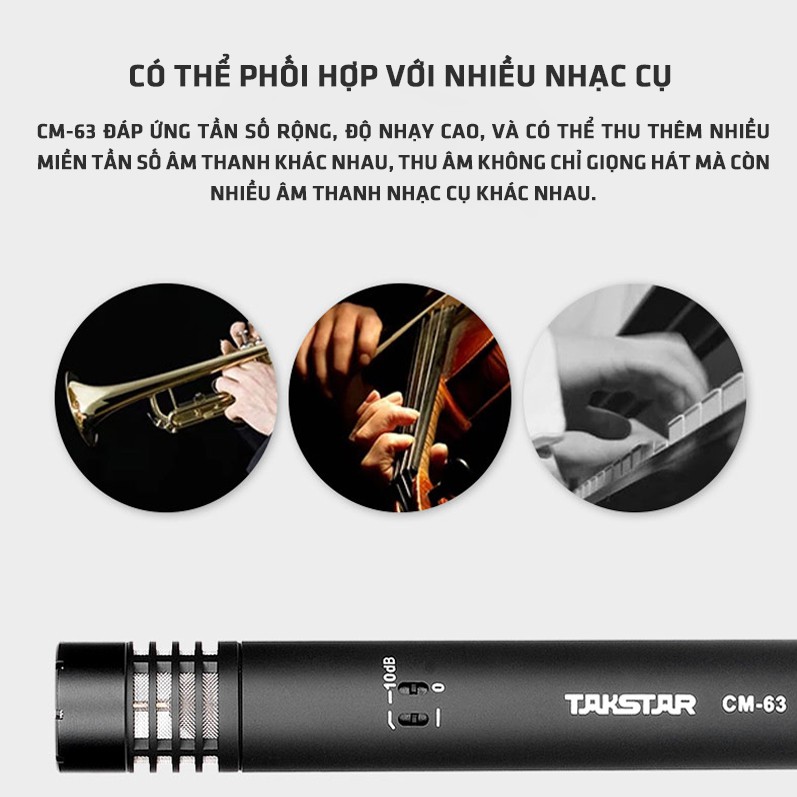 Mic Thu Âm Nhạc Cụ Chuyên Nghiệp Takstar CM-63 Thu Âm Ghi-ta, Piano, Sáo, Kèn, Độ Nhạy Cao, Chính Hãng Bảo Hành 12 Tháng