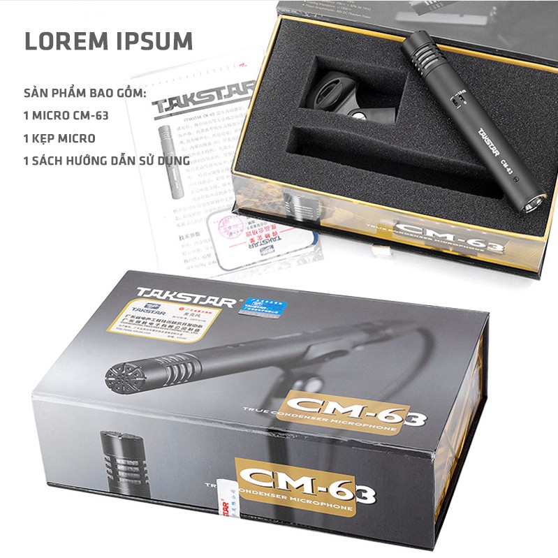 Giới thiệu Mic Thu Âm Nhạc Cụ Chuyên Nghiệp Takstar CM-63 Thu Âm Ghi-ta, Piano, Sáo, Kèn, Độ Nhạy Cao, Chính Hãng Bảo Hành 12 Tháng