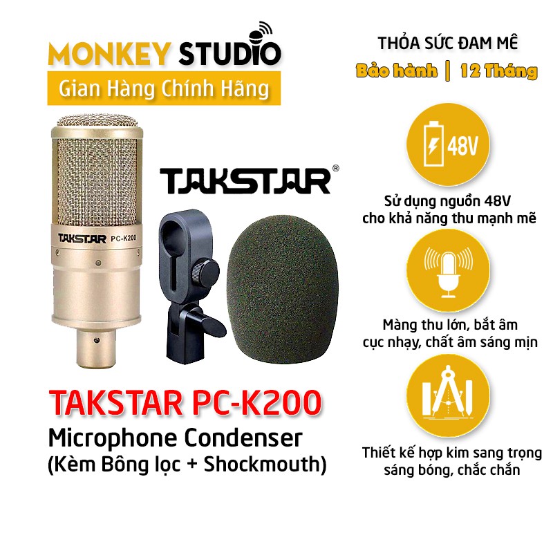 👉 Phụ kiện kèm theo: Full Box (Micro TAKSTAR PC K200 + Giá Đỡ Mic + Bông Lọc + Sách Hướng Dẫn)