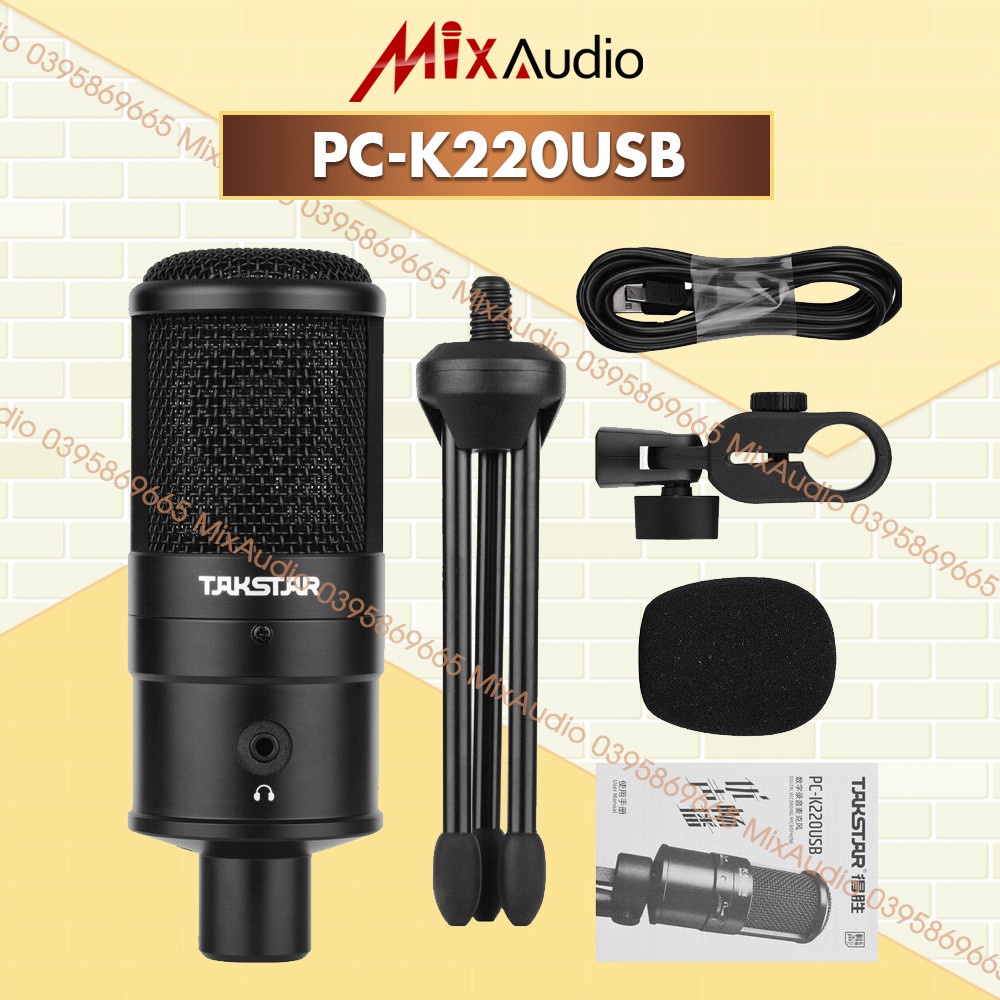 Mic thu âm Takstar PC-K220USB, Micro dùng cho máy tính, thu lồng tiếng bài giảng, không cần sound card [BẢO HÀNH 1 NĂM]