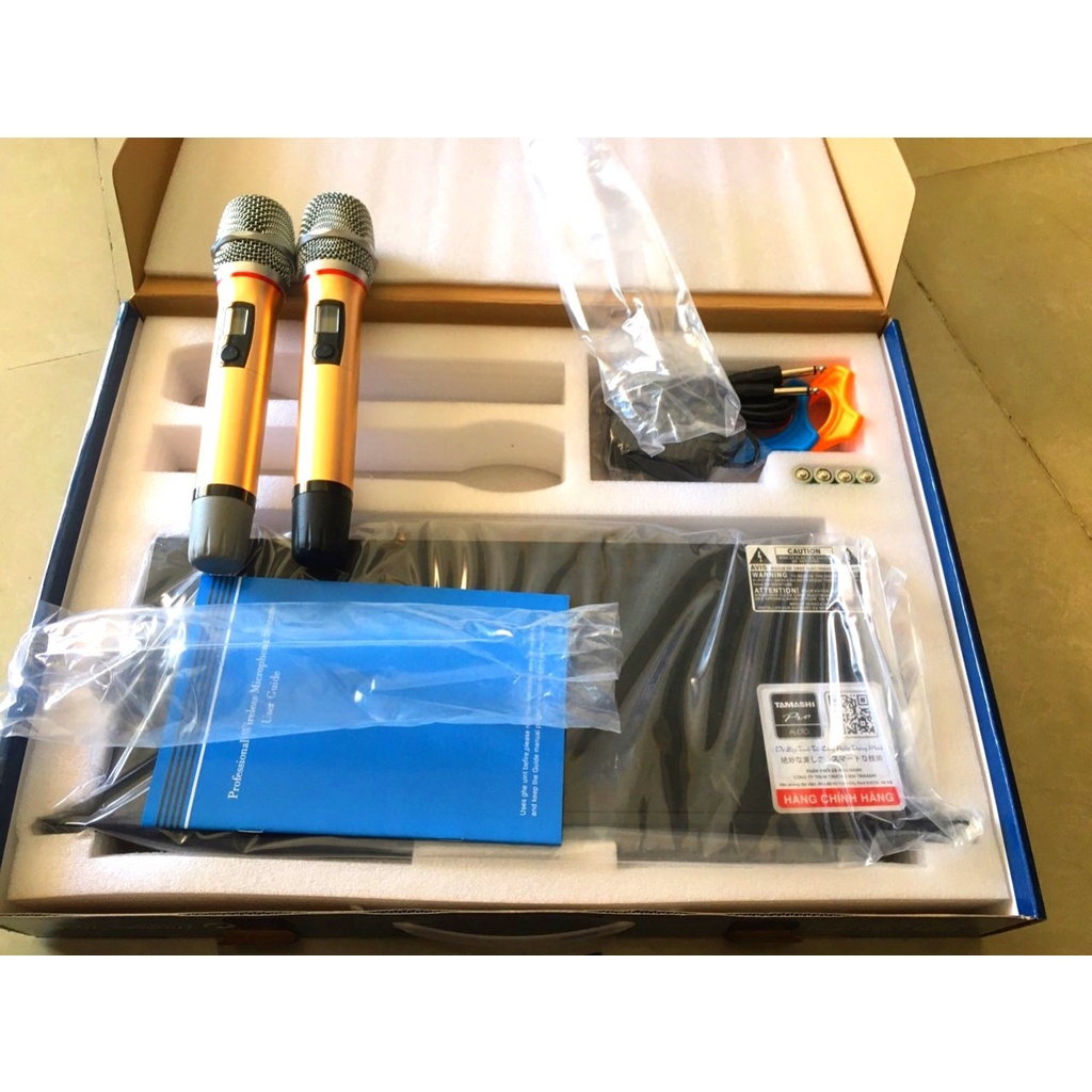 Mic không dây - micro không dây thông minhBộ mic không dây cho chất âm sáng và ấm hát nhẹ, bộ thu sóng ổn định. Tay chắc chắc, phân khúc tầm trung dùng cho hát gia đinh rất tốt. Có thay đổi được tần số đồng bộ sóng, thay đổi âm lượng.