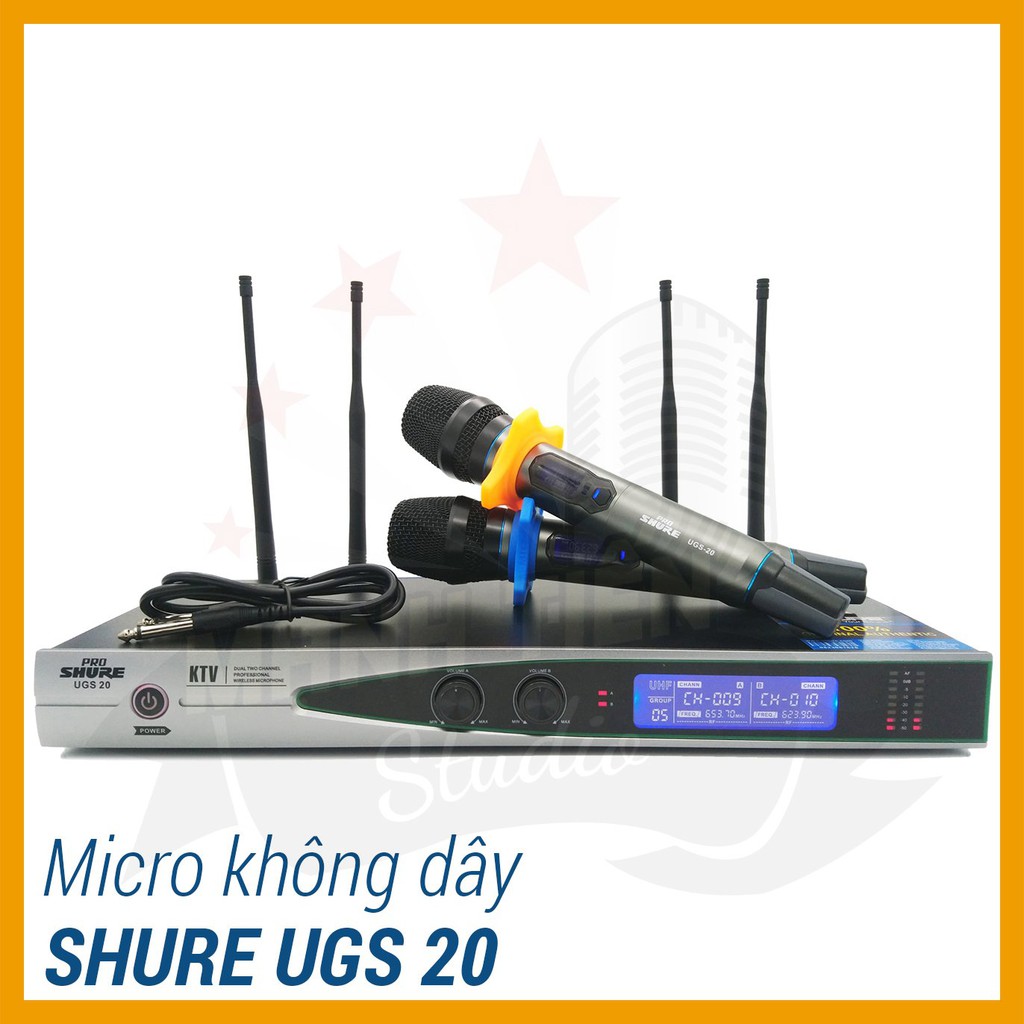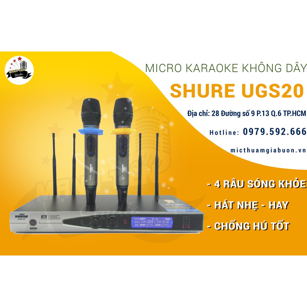 Thiết Bị Âm Thanh > Micro thu âm || Micro 4 râu sóng khỏe karaoke không dây Shure UGS20 hát nhẹ và chống hú tốt bắt sóng xa bảo hành 1 nămCòn hàng