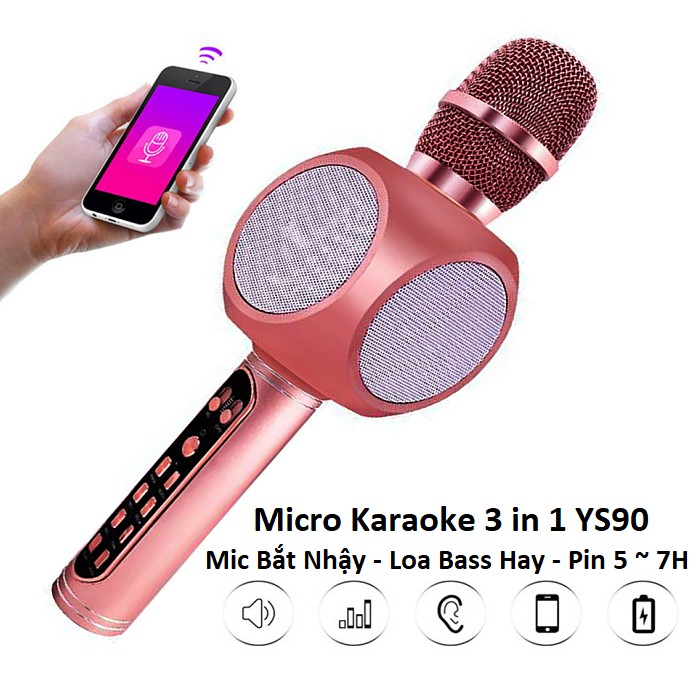 Micro Bluetooth Hát Karaoke Tích Hợp Loa Bass Hay YS90, Mic Bắt Giọng, Âm Thanh Trong Lớn, Gắn Usb, Thẻ Nhớ, Cổng 3.5