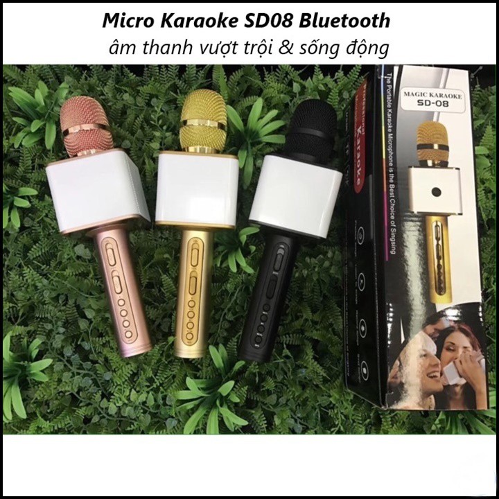 - Micro karaoke SD-08 là thiết bị giúp bạn kết nối với điện thoại Smartphone thông qua sóng Bluetooth. Nhờ trang bị cả loa và mic trên cùng một sản phẩm nên bạn chỉ cần mở một bản nhạc bất kì từ điện thoại là có thể phát trực tiếp ra loa, cho bạn thỏa thích hát karaoke ngay tại chỗ với chất lượng âm thanh to, rõ cực đỉnh.