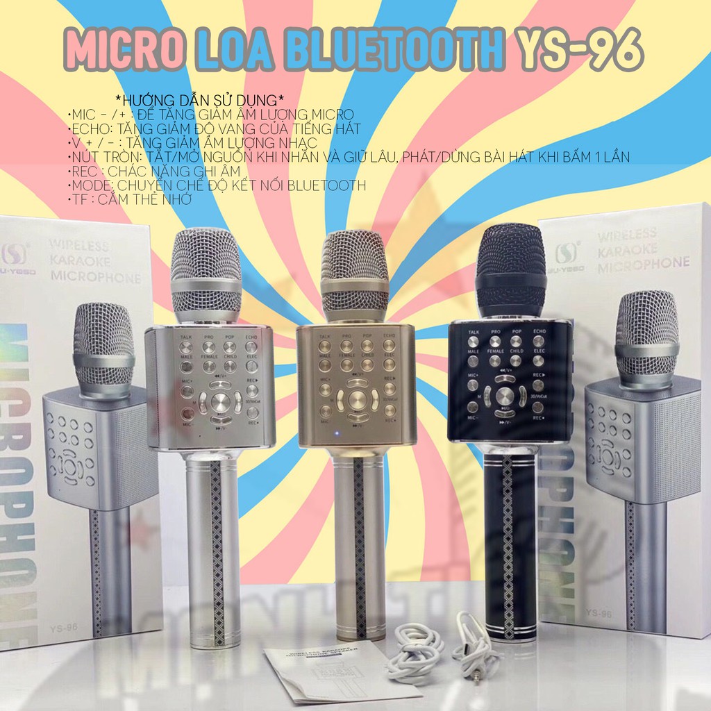 Giới thiệu Mic Karaoke YS-91 Micro Karaoke kèm Loa Bluetooth 3 trong 1 nhiều hiệu ứngChất liệu sản phẩm: nhựa, kim loại.
