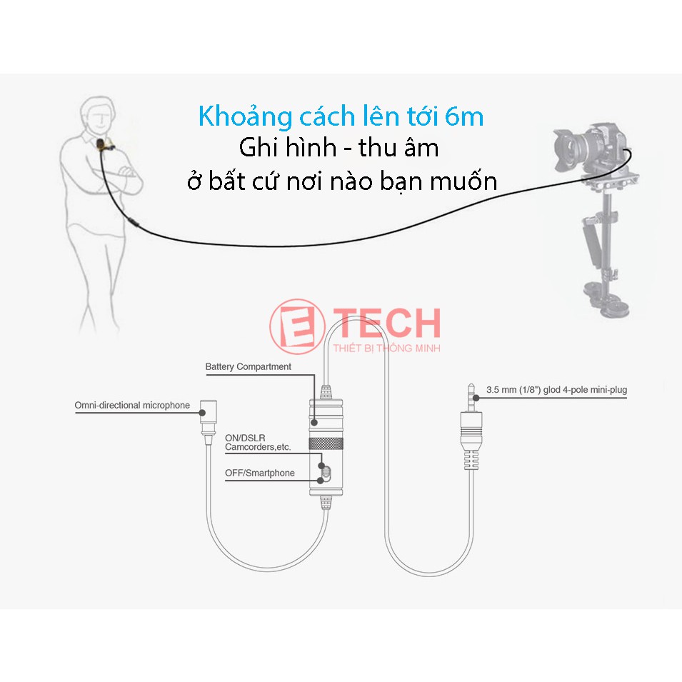 *Dùng với smartphone sẽ không cần pin vì mic sẽ nhận nguồn điện từ điện thoại.