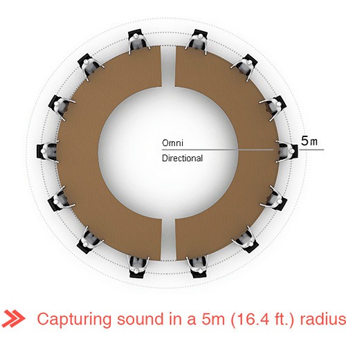 Bán kính thu rộng 6m, hướng thu 180 độ cho phép BY-MC2 truyền đi những âm thanh trung thực nhất của cuộc họp.