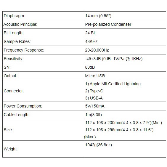 Micrô này có cấu trúc hoàn toàn bằng kim loại bền, bao gồm giá để bàn có thể điều chỉnh micrô ở các góc độ mong muốn khác nhau, cũng có chức năng của gấp micrô xuống để cất giữ và vận chuyển.