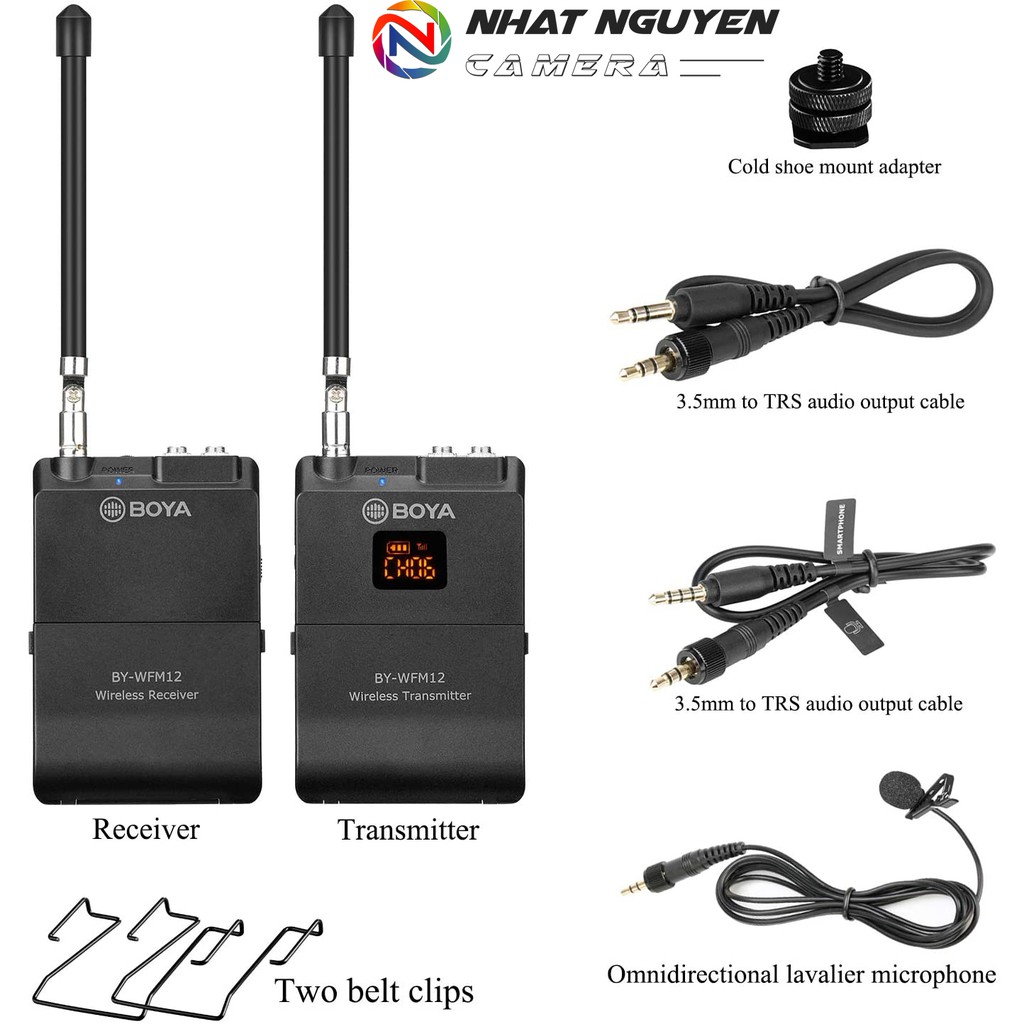 BOYA BY-WFM12 là Hệ thống micrô không dây VHF 12 kênh, thu âm thanh bằng điện thoại thông minh, DSLR, máy quay phim, máy ghi âm, PC và hơn thế nữa.