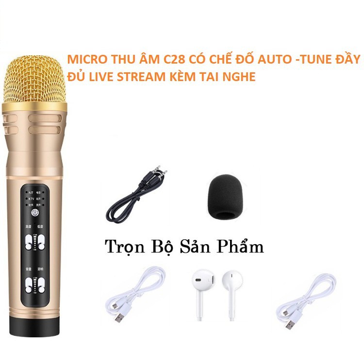 Micro C28, mic thu âm cao cấp hát livestream karaoke có chế độ autotone thế hệ mới