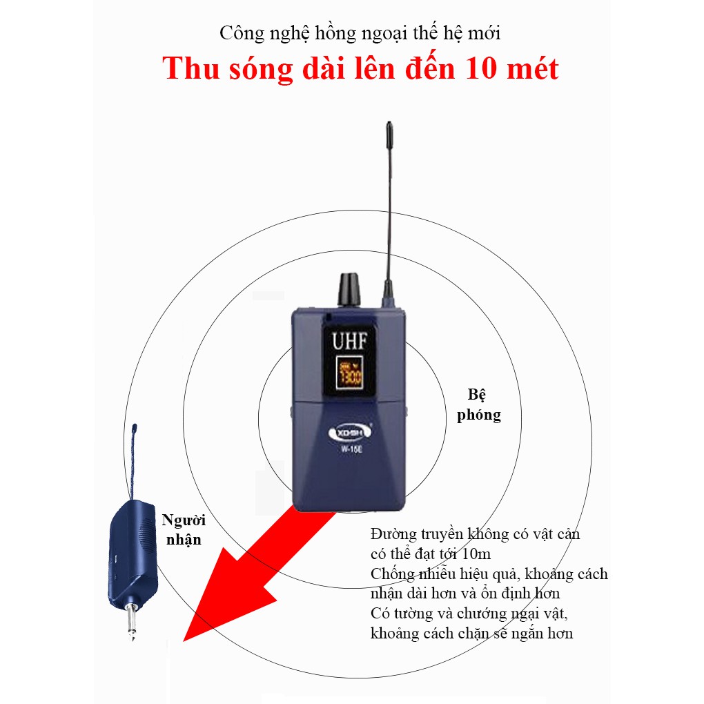 + Sử dụng pin sạc cho đầu thu, pin tiểu cho mic cài áo
