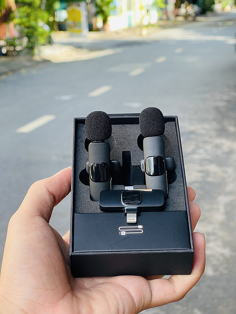 Giới thiệu Micro cài áo mini K9 không dây đầu cắm Chuẩn iPhone. micro cài áo mini cắm vào và dùng ngay hỗ trợ ghi hình video, phát trực tiếp trên tiktok, fb , quay Vlog, đồng bộ hóa tự động cho buổi phỏng vấn, Giảm nhiễu nhỏ gọn mà bạn có thể mang đi bất cứ đâu.