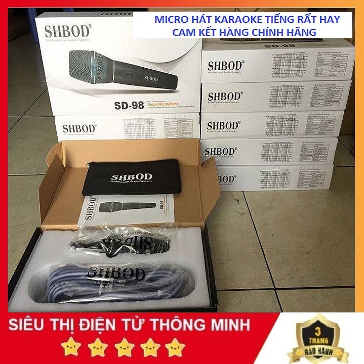 Micro Có Dây Karaoke SHBOD SD-98Mic có dây SHBOD SD98 là dòng mic, chính hãng có dây cao cấp trên thị trường hiện nay, với độ nhậy cao giúp âm hút nhậy ,chống hú tốt, âm thanh rất trong, mà quan trọng là khi hát lên cao nhất không bị vỡ tiếng