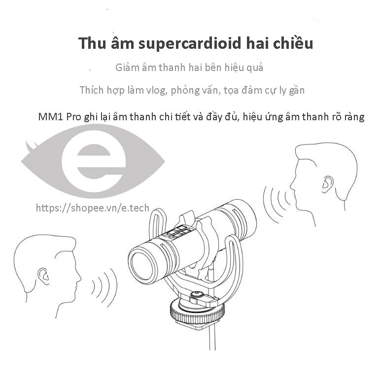 Boya BY MM1 pro là micro condenser định hướng dạng kép có thể thu âm cùng lúc hai phía trước và sau. Ngoài ra, bạn cũng có thể tắt một trong 2 chiều khi cần thiết.*Đặc điểm nổi bật: