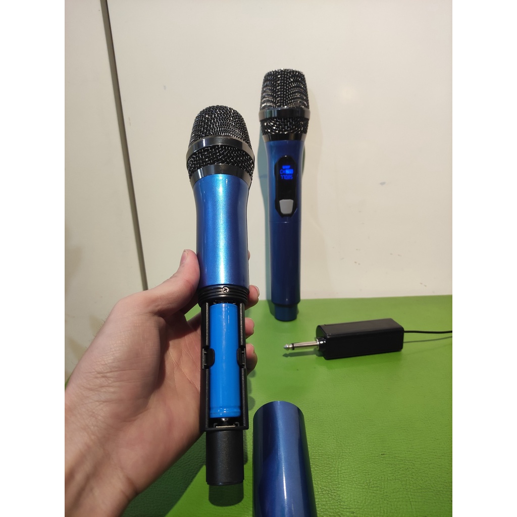 Giới thiệu Micro hát karaoke chất liệu thép - míc hát chuyên nghiệp Ontekco Mu02 màu xanh đỏ không dây