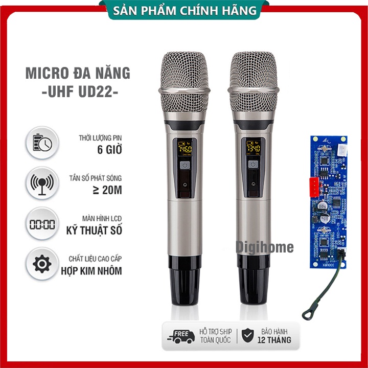 Thiết Bị Âm Thanh > Dàn âm thanh > Hệ thống âm thanh giải trí tại gia || Bộ micro hát karaoke không dây UD22 | UD21 | MV02, Tần số UHF Cao cấp, Chuyên cho Loa kéo (Mainboard ante Tích hợp)Còn hàng