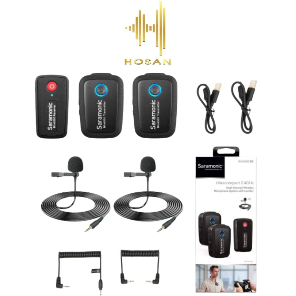 - Saramonic Blink 500 B2 là hệ thống micrô không dây cho 2 người cực kỳ nhỏ gọn, nhẹ và dễ sử dụng dành cho máy ảnh DSLR, máy ảnh mirrorless và máy quay video hoặc thiết bị di động mang lại âm thanh chất lượng truyền hình chi tiết.
