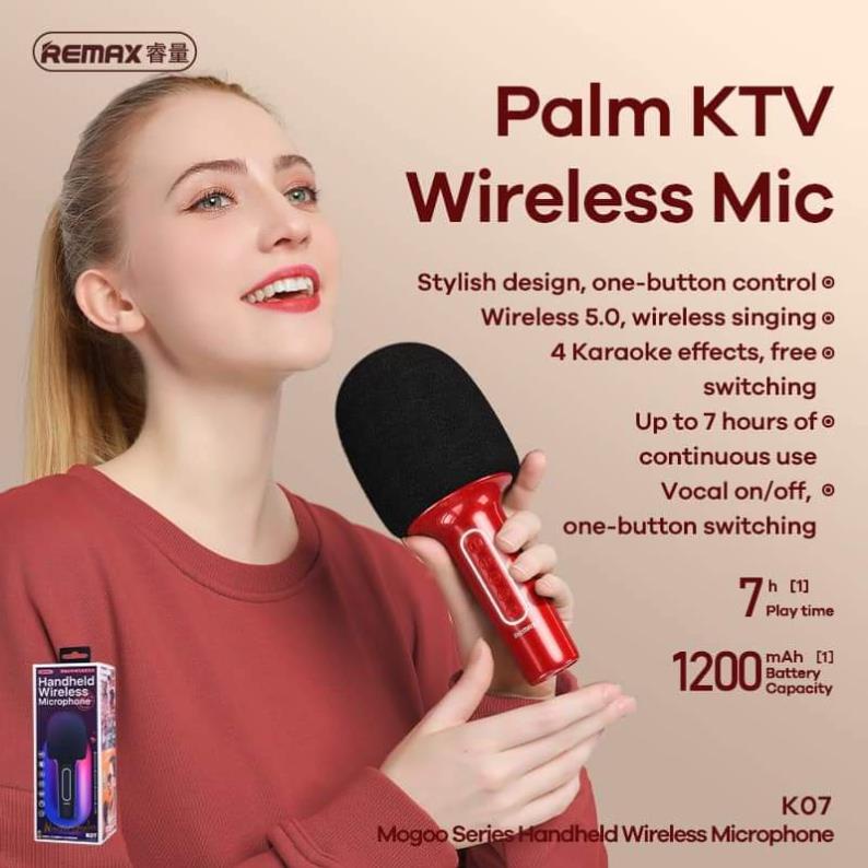 Thiết Bị Âm Thanh > Micro thu âm || (Mới)Micro Karaoke 2022 không dây thông minh Remax K07 hỗ trợ trí tuệ nhân tạoCòn hàng