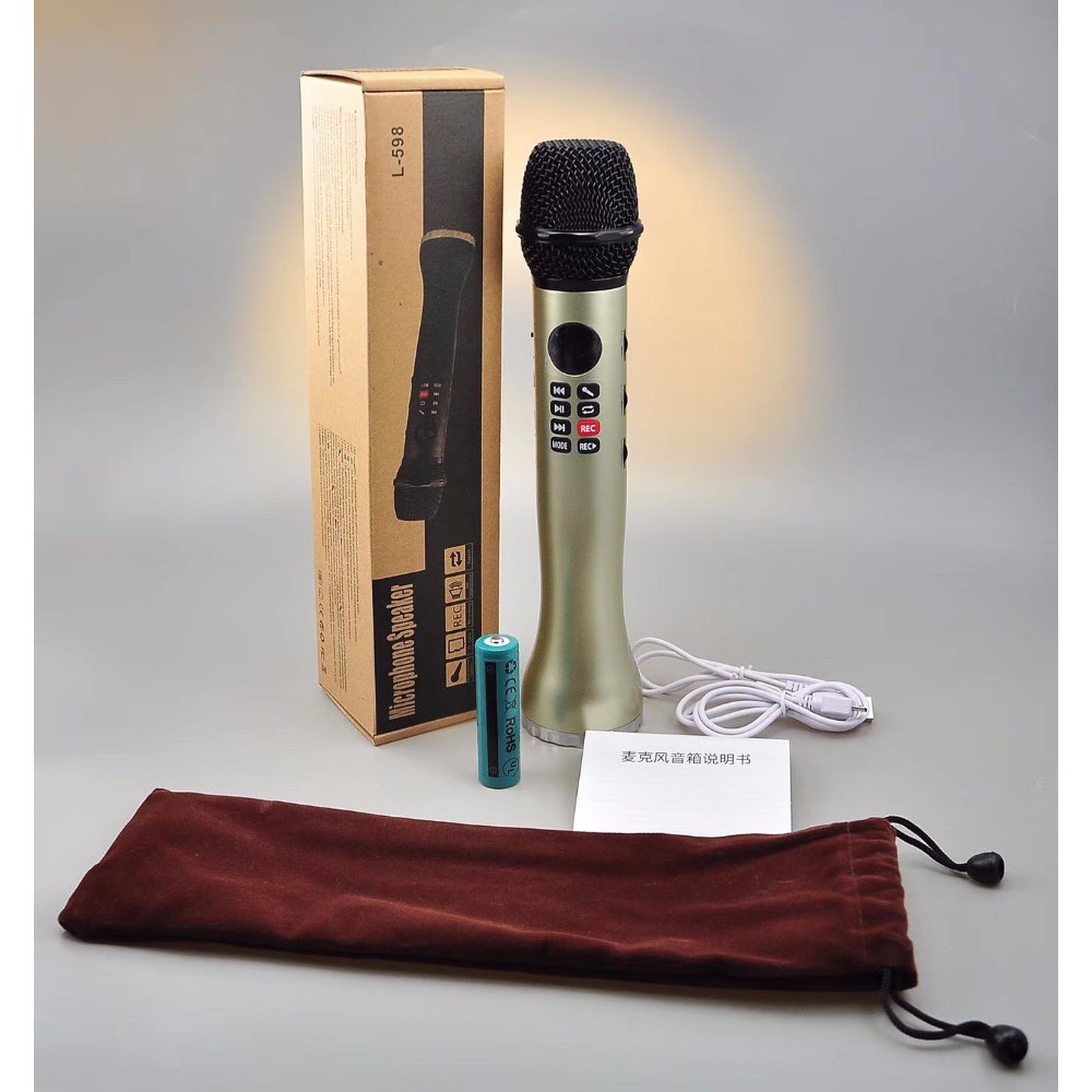 - Micro karaoke bluetooth L-598 cho phép bạn hát và ghi âm giọng nói của bạn ở mọi nơi. Micro chất lượng cao mang lại âm thanh rõ ràng và chất lượng. Bạn có thể sử dụng loa micro này để hát bài hát cho dù ở KTV hay ở nhà. Tính năng, đặc điểm micro chất lượng cao sẽ lọc tiếng ồn và không khí. Một phím để ghi lại chức năng, lắp thẻ TF, nhấn nút REC để ghi lại âm thanh (không có card TF). Kết nối micro L-598 với điện thoại của bạn qua bluetooth, bạn có thể hát những bài hát yêu thích của mình mọi lúc mọi nơi.