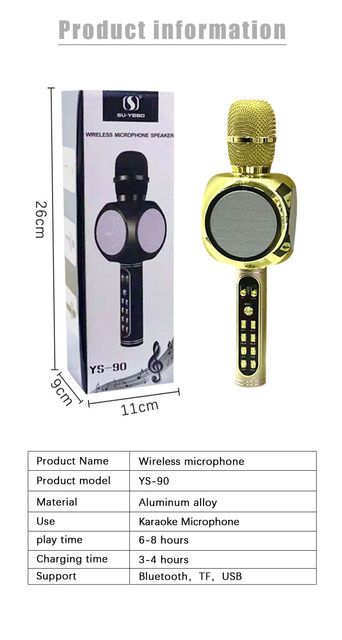 GIỚI THIỆU CHUNG về Micro karaoke bluetooth Su-Yosd YS90 chính hãng, mic hát karaoke kèm loa bluetooth âm thanh chuẩn bass- Micro karaoke bluetooth Su-Yosd YS90 chính hãng là phiên bản được cải tiến mới nhất của nhà sản xuất Su-Yosd đình đám. Micro được trang bị 2 loa âm bass to rõ, các nút điều chỉnh chức năng đa dạng giúp âm thanh trong trẻo hơn và đa dạng hơn.