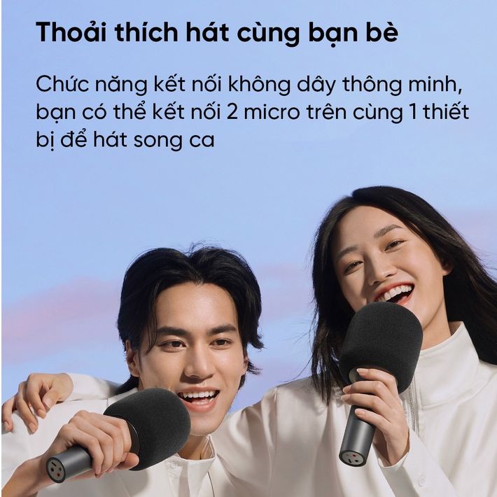 Chức năng kết nối không dây thông minh, bạn có thể kết nối 2 micro trên cùng 1 thiết bị để hát song ca. Bluetooth 5.1 cho kết nối ổn định và độ trễ cực thấp.