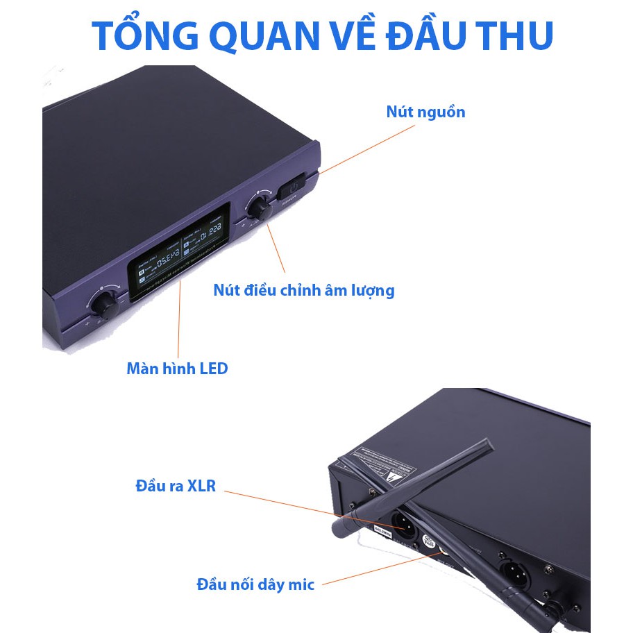 + Bộ đầu thu tiện dụng cho phép điều chỉnh âm lượng, tần số, kết hợp vang số, vang cơ