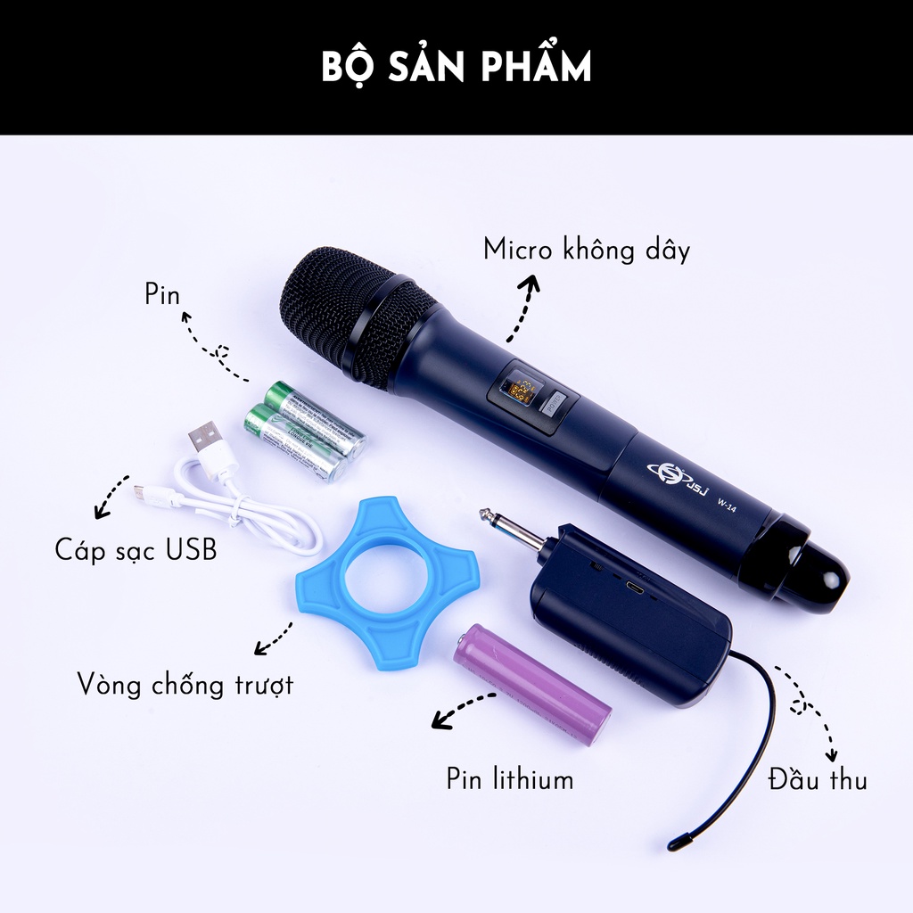 - 𝐓𝐡𝐨̂𝐧𝐠 𝐭𝐢𝐧 𝐬𝐚̉𝐧 𝐩𝐡𝐚̂̉𝐦:+ Tên sản phẩm: Micro karaoke không dây cao cấp JSJ W-14