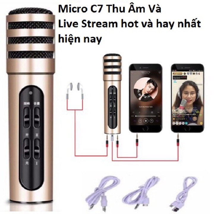 Thiết Bị Âm Thanh > Micro thu âm || Micro Karaoke Livestream Thu Âm C7 Âm Thanh Chuyên Nghiệp + Tặng Tai NgheCòn hàng
