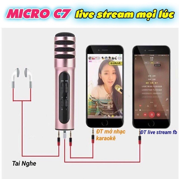 Micro Karaoke/Micro Livestream Thu Âm C7 Âm Thanh Chuyên Nghiệp + Tặng Tai Nghe hàng Chính Hãng