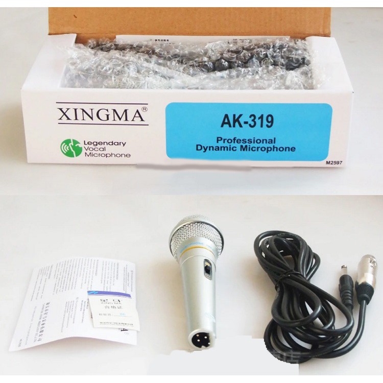 - Microphone Xingma AK-319 có thiết kế truyền thống, dây cáp dài, đầu micro có bông lọc chống hơi ẩm và lưới thép bảo vệ.