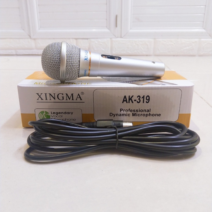 - Microphone Xingma AK-319 có thiết kế truyền thống, dây cáp dài, đầu micro có bông lọc chống hơi ẩm và lưới thép bảo vệ.
