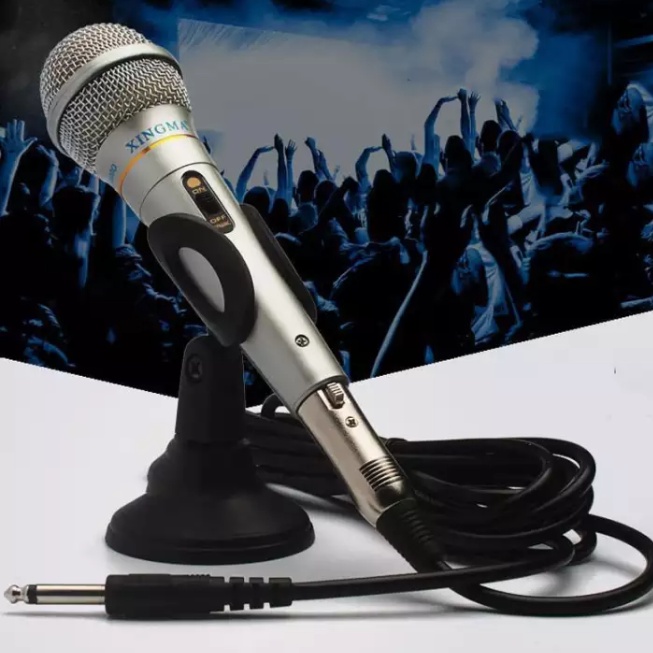 - Microphone karaoke gia đình Xingma AK-319 có thiết kế truyền thống, dây cáp dài, đầu micro có bông lọc chống hơi ẩm và lưới thép bảo vệ.
