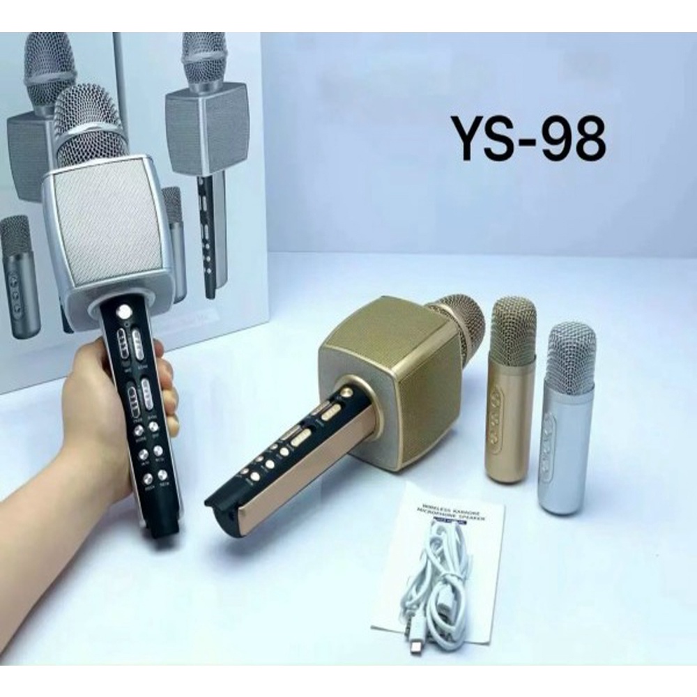 Micro Karaoke YS-98 Song Ca Kèm Loa 2 mic Bluetooth Cao Cấp, Micro Bluetooth 3in1 - Hiệu Chỉnh Được Bass Treble Ấn Tượng
