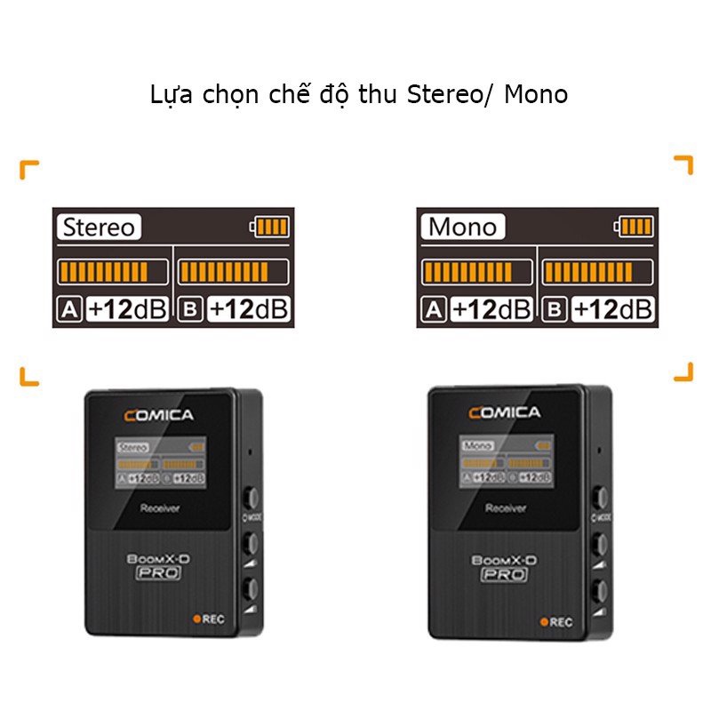 Comica BoomX-D Pro là micro không dây 2.4G mới nhất của hãng, được nâng cấp từ phiên bản BoomX-D với những cải tiến về chất lượng thu, khoảng cách thu xa hơn lên đến 100m và đặc biệt hỗ trợ bộ nhớ 8GB trên bộ phát cho phép bạn ghi âm thanh lên đến 24 giờ. Được thiết kế dành cho nhà báo, nhà quay phim và vlogger di động.... chuyên dùng cho máy ảnh, máy quay phim, smartphone hoặc máy tính bảng