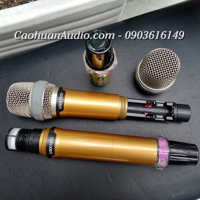 Bộ micro UGX10 IIIđóng hộp bao gồm:1 đầu thu, 2 tay micro, 4 anten, 1 dây nguồn adapter của đầu thu, 1 dây cáp 6ly 2 đầu, 2 bản lề gắn đầu thu, 4 viên pin AA, 2 nhựa màu chống rơi cho mic.