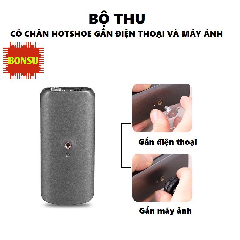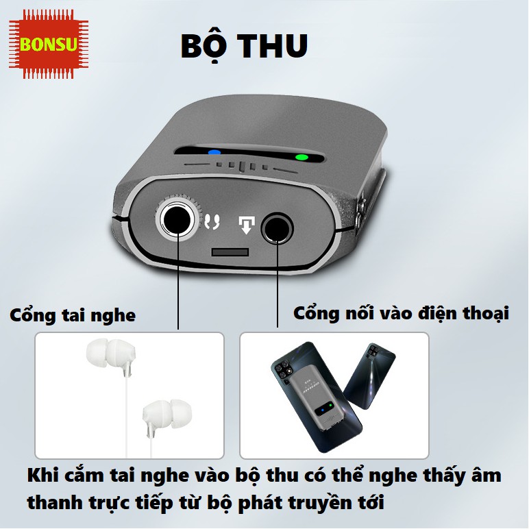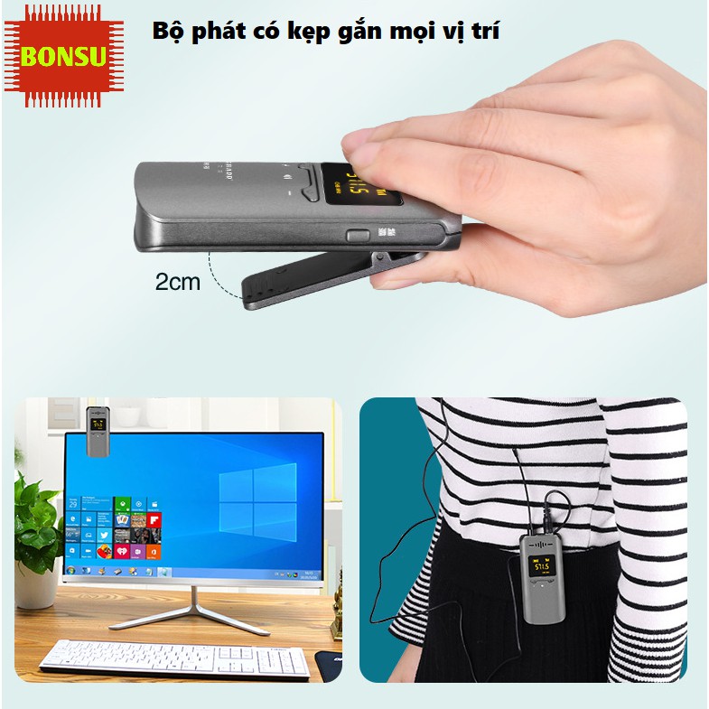 Thời gian sử dụng lâu dài: cả bộ phát và bộ thu đều được tích hợp pin sạc có dung lượng 400mAh (3.7V), cho thời gian sử dụng liên tục trong 5 giờ.
