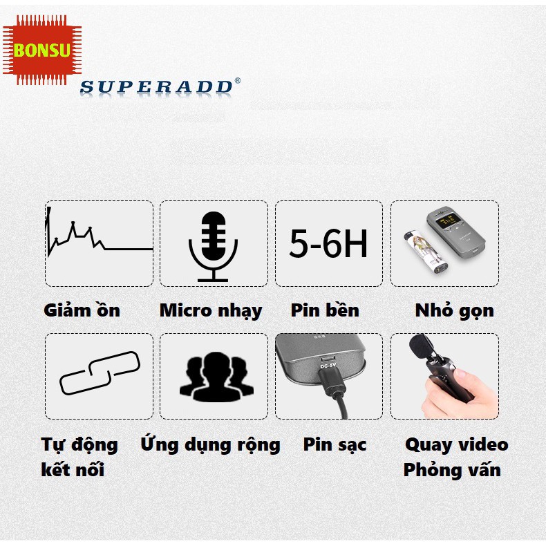 Thiết Bị Âm Thanh > Micro thu âm || Micro không dây cao cấp Superadd, quay video, phỏng vấn, livestream chất âm tốtCòn hàng