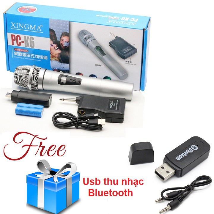 Micro không dây cao cấp Xingma PC K6 công nghệ lọc âm lọc nhiễu Tặng kèm 1 Usb thu nhạc Bluetooth