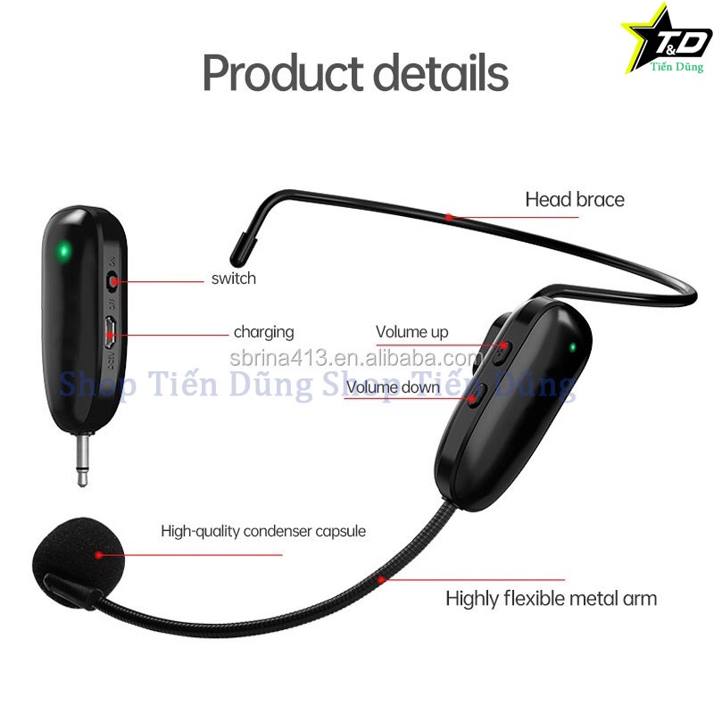 - Mic không dây đeo tai sử dụng rất dễ dàng và tiện lợi, khả năng kết nối không dây lên đến 30m. Có thể kết nối được với hầu hết các thiết bị thông dụng như PC, Laptop, SOund card, Ampli, Loa kéo, loa trợ giảng, Mixer...